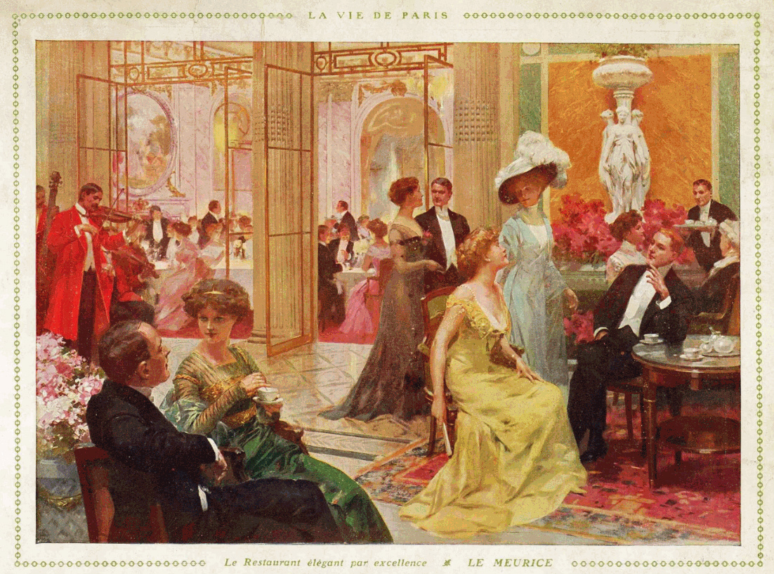 ロシア革命でロマノフ王朝が滅亡した1917年以降、ロシアから多くの亡命者を受け入れたパリは、「狂騒の20年時代」に突入。第一次世界大戦の痛みを忘れ、平和を謳歌しようと、パリ文化は華やぐ。芸術家や詩人、実業家などが集う社交場としてカフェ・ソサエティが流行り、亡命ロシア貴族によるファッションブランドも設立された。ロシアバレエ団は、エキゾチックな衣装と高い芸術性でパリジャンを魅了、ピカソやサティ、コクトーと交流する。ロシア人は、それまでのパリには存在しなかった感性で、才能を開花させ、狂騒の時代を彩ったという。ル・ムーリスにおいても晩餐会や舞踏会、演奏会や読書サロンが開催され、芸術家の社交場として、パトロンとアーティストを繋ぐ文化的な役割を担った。