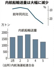 内航船輸送量、最低を更新 5月26%減 - 日本経済新聞
