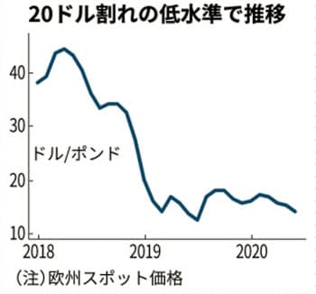 コバルトはEV需要を見越した中国の新興電池関連メーカーや投機筋の買いにより2017年から急騰。18年4月には1ポンド44ドル前後まで値上がりした。相場の上昇で生産の拡大に拍車がかかり、18年は世界全体で14万8千トン。13年(11万トン)から5年で3割増えた。しかし、実際の需要は伸び悩み、19年以降は供給過剰が鮮明になった。