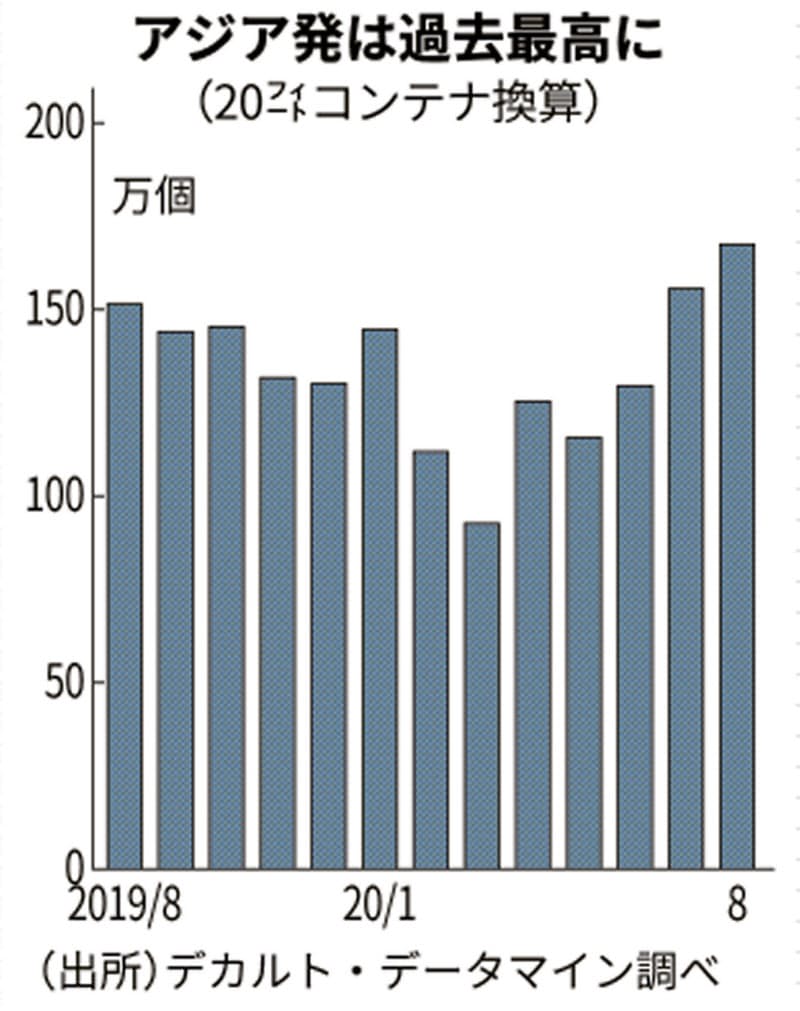 輸送量、過去最高に アジア発コンテナ8月10%増 - 日本経済新聞
