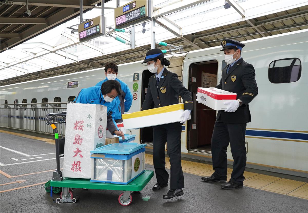 JR西はコロナ禍で利用が減少する山陽・九州新幹線の車内販売スペースを使い、九州から鮮魚や青果を関西まで運ぶ実証実験を2月に開始した。保冷などの状況を見定めつつ、「今秋には事業化したい」(担当者)考えだ。2月の実証実験では、新幹線で新大阪まで輸送した商品を特急で大阪駅まで運び、同駅に直結するホテルで食材を調理してみせた。