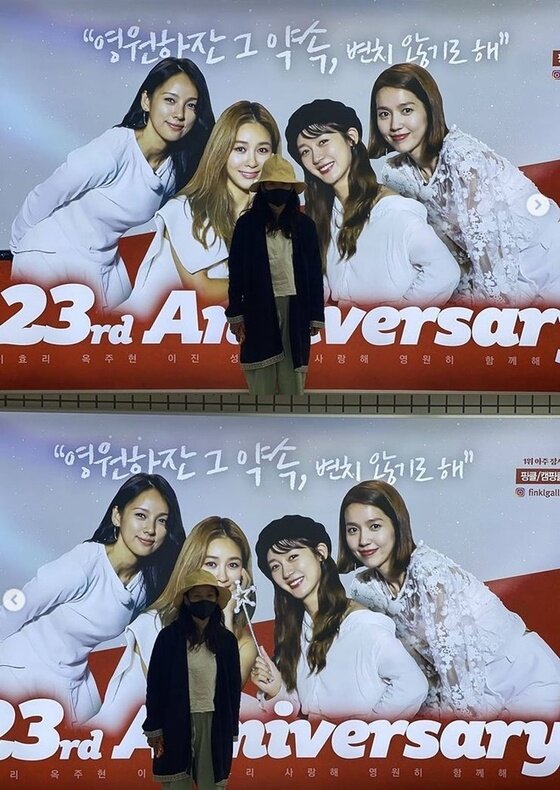 인스타그램에는 "핑클 데뷔 23주년 기념 전광판에 깜짝 방문한 리더횰"이라며 "궂은 날씨에도 찾아주신 우리 리더님께 깊은 감사를 드립니다. 우리 오래오래 함께해요"라는 글이 남겨졌다.