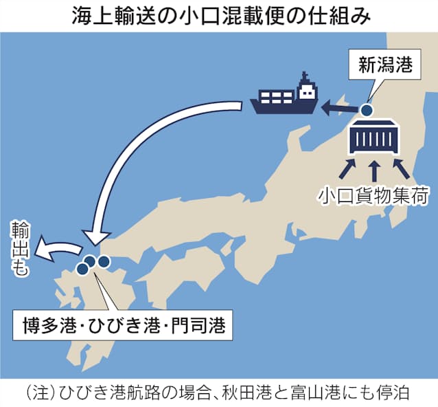 新潟―九州の海上輸送で小口混載 少量でもトラック→船 - 日本経済新聞